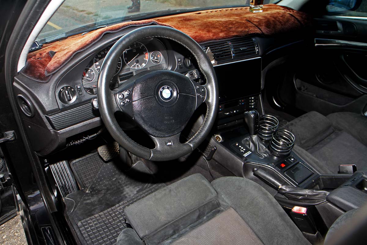 | 這部車是2001年的520i,因此內裝配備比較豪華,而車主已將座椅與方向盤都換成M-Tech式樣。 |