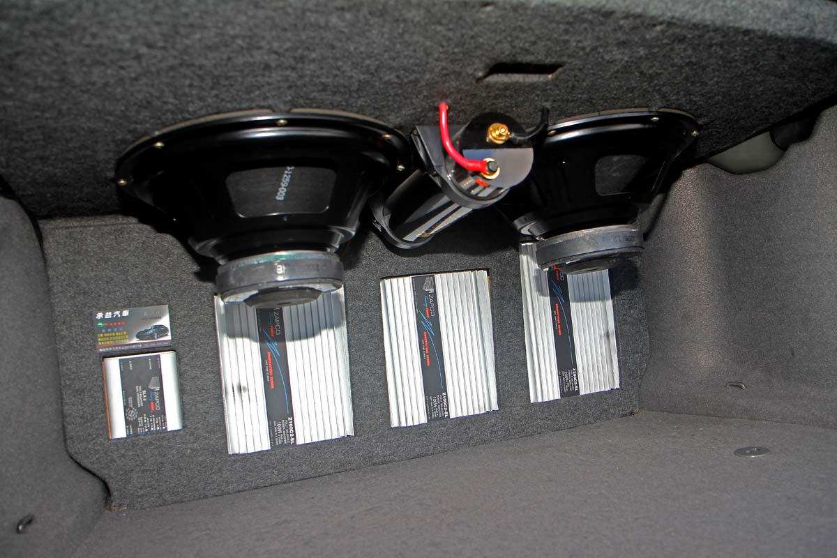 | 行李廂內還看得到車主強化過的音響設備。 |
