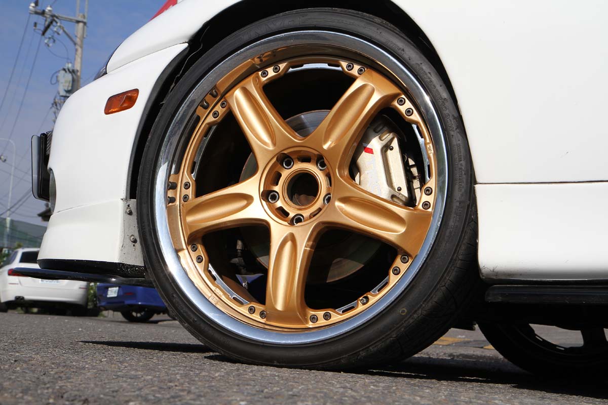 | 輪圈採用金色多片式產品,搭配白色車身,旗艦車型油然而生。 |