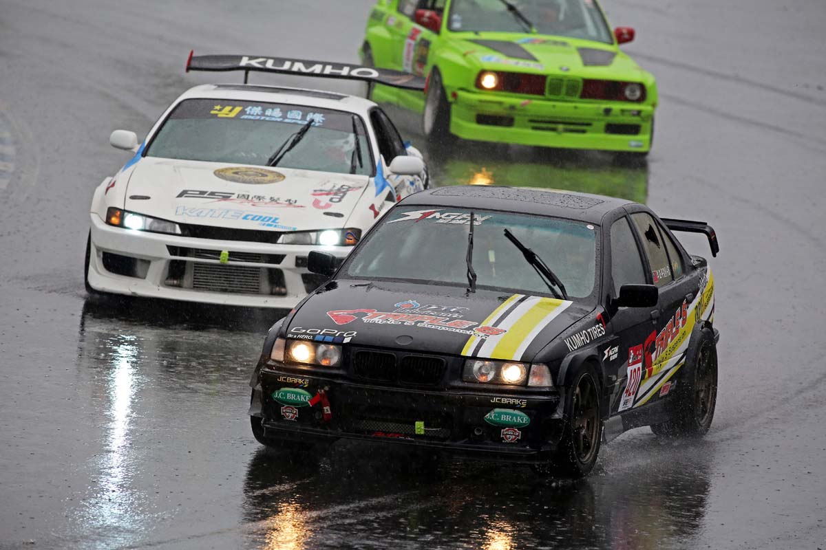 | 受惠於OTGP今年七月重新修正1986年以前出廠的老車車重不受限制,加上碰巧有專用競技雨胎,因此由鄭裕仁所駕駛的E30能夠勇猛向前衝。 |