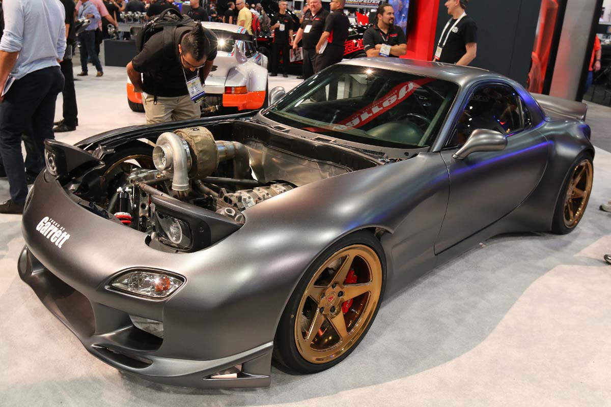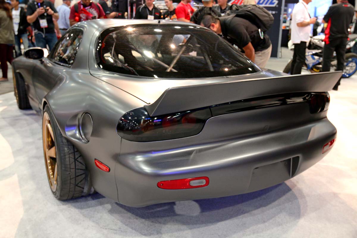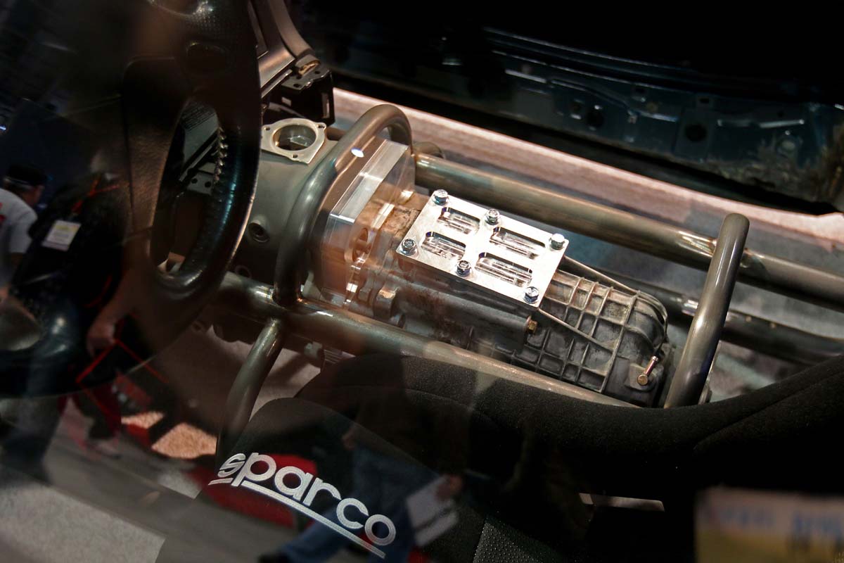 不過眾所皆知,FD3S只有後輪傳動的設定,而老美的改裝則是不同於日本人,教育方式的不同也衍生出他們不著邊際的想像空間,就像這輛停在會場內,沒有工作人員、沒有任何改裝明細,不知從何冒出來的FD3S,大方地打開引擎蓋讓到場觀眾看個清楚,而看得懂的人就會發現這輛車越看越不對勁。