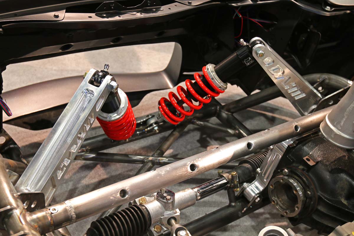 | 這輛車幾乎已經剩下外殼FD3S,整個車體結構及底盤機構都已經改變,尤其是可看到前懸吊改為推桿式底盤,來應付日後狂放的動力設定。 |
