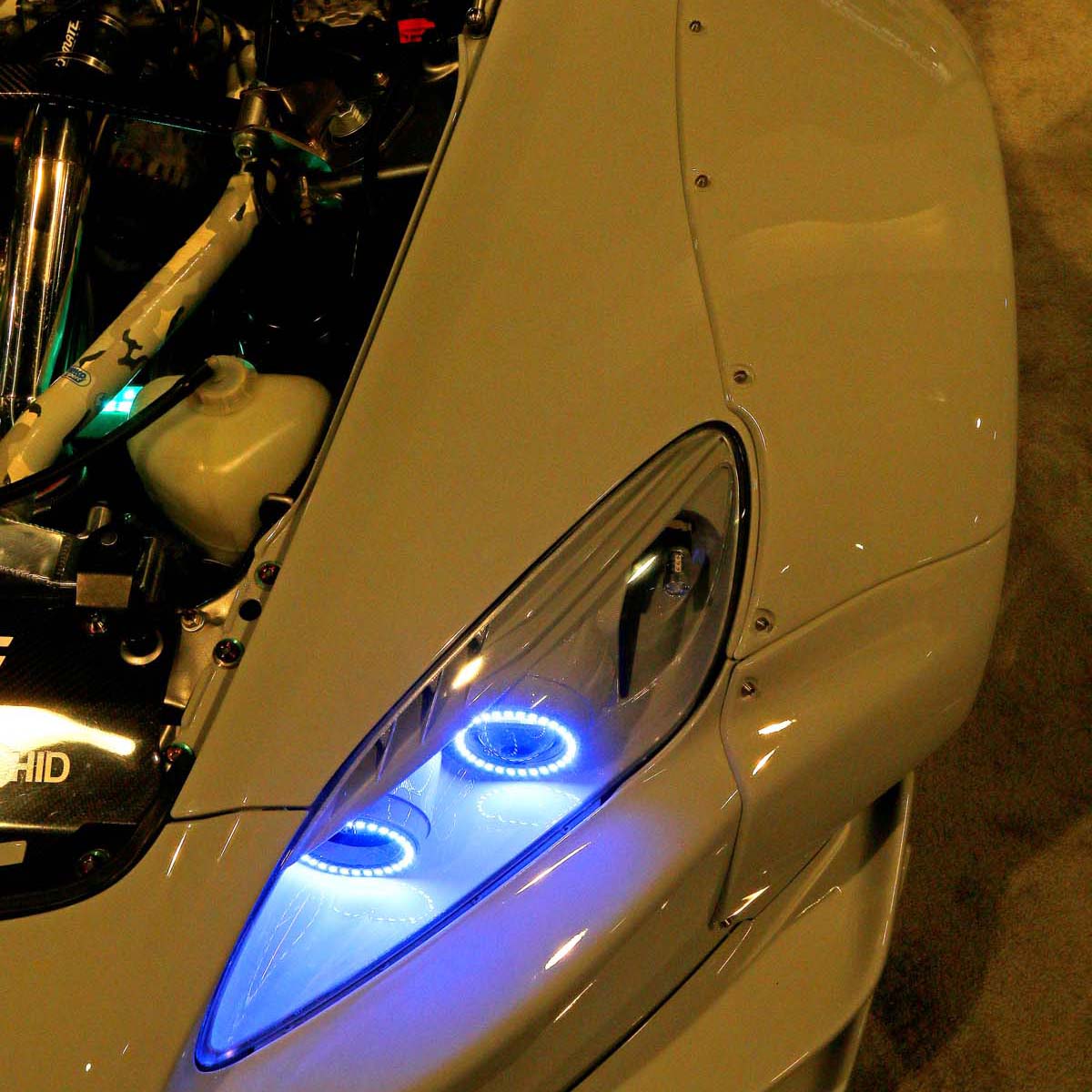 這輛車是由位在加拿大的Gers所改裝,整輛車的個性就是像玩命關頭風,動力、外觀、燈光及音效通通都沒漏掉,百分之百老美才會幹得事情,車頭的魚眼光圈頭燈,可以自由的變換色調,搭配高亮度的LED尾燈,在台灣就是完全藐視法規的式樣,不過大家可知道這套燈具可是出自台灣之光DEPO,講到這裡就不禁悲從中來,也難怪台灣很多零配件製造商,將工廠設在台灣也寧可不要賣東西給台灣,其原因就是如此。