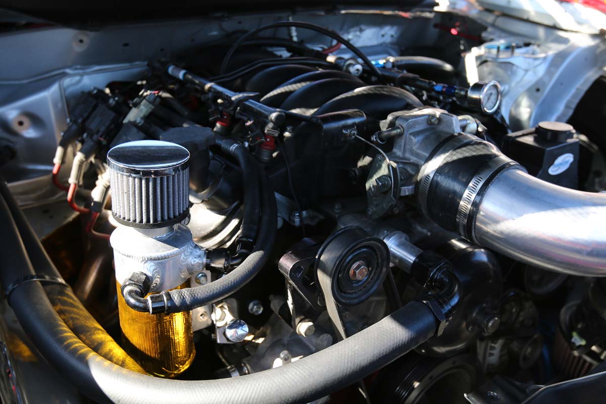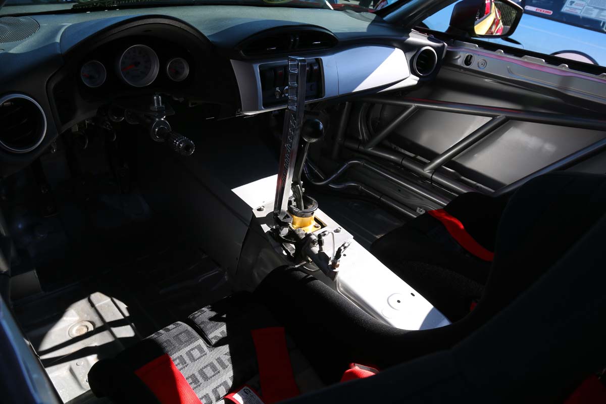 雖然說V8引擎植入會讓車輛的重心更往前移,不過這並不會阻礙甩尾設定需求,有了重量壓在車頭上反而更容易讓車手作慣性鐘擺,不過在這之前車輛不必要的重量負擔都必須先移除讓負重更輕,因此車內除了防滾架與賽車桶椅以外全數清空,為了方便後輪制動,手煞車也改用直立把手取代。除此之外,為了妥善用車輛空間,同時增加燃油系統供給的穩定與安全性,原廠的油箱廢除,並且在備胎空間增設ATL賽車防爆油箱,就算甩尾的G值再大也不用擔心引擎會吸不到油。