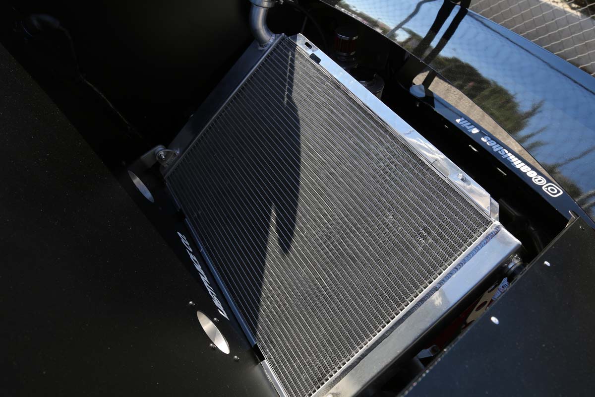 | 冷排系統移植在後行李箱的做法,除了可以減輕車頭重量與提升散熱效能外,就算車頭發生小碰撞也不用怕。 |