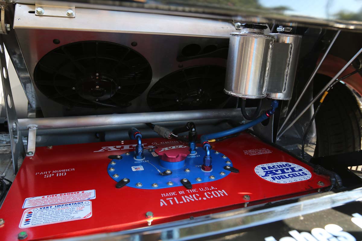 只不過為了因應甩尾競賽時容易因碰撞而造成引擎或冷卻系統受損,想要降低損害風險又要減輕車頭重量,能夠改善的唯一方法就只能把冷卻系統往後移植,因此可以很明顯看到除了後擋風玻璃移除之外,利用後座與行李廂空間刻意打造的集風槽,能夠讓車頂的冷空氣替水箱進行散熱,加上高速風扇與行李箱增設的導風洞,有效維持引擎水溫又能讓車輛配重更均衡,而水箱後移之後也讓車頭的緩衝空加大間,不用過於擔心小碰撞的損傷。