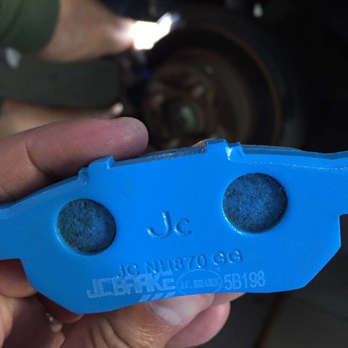 本身是跑計程車為主,不過自己也滿喜歡開車的感覺,所以已經換上了KYB黑筒搭配短彈簧,排氣管也改裝了白鐵全段來增加一點沒有客人時候的樂趣,雖然為了要計算開銷所以輪框選擇台製17吋,及大陸的便宜輪胎,不過實際使用上其實還真的比想像中的好上許多,而這次則是因為在店家看到Option上的試用活動因此投稿,沒想到因此抽中J.C.BRAKE-凌雲極限版Hyper Cera-max來令片,而自己也加碼自行購入J.C.BRAKE-凌雲極限版Hyper Cera-max後來令片來做全車的搭配,換好後踩下去第一下就感覺前後都相當緊,好像不太需要磨合的感覺,大約100km/h內的煞車反應都相當棒,也沒有任何煞車時的噪音,再上去的高速可能要等我去高速公路才知道,藍綠色的來令片透過輪框看進來視覺上又加分不少。