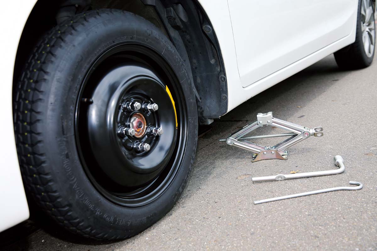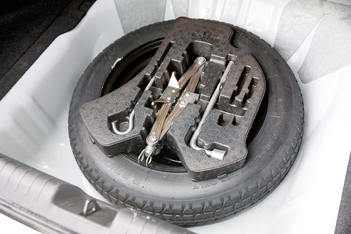 | 在放置三角架之後便是在行李廂底板下方取出備胎、千斤頂與扳手等工具。 |