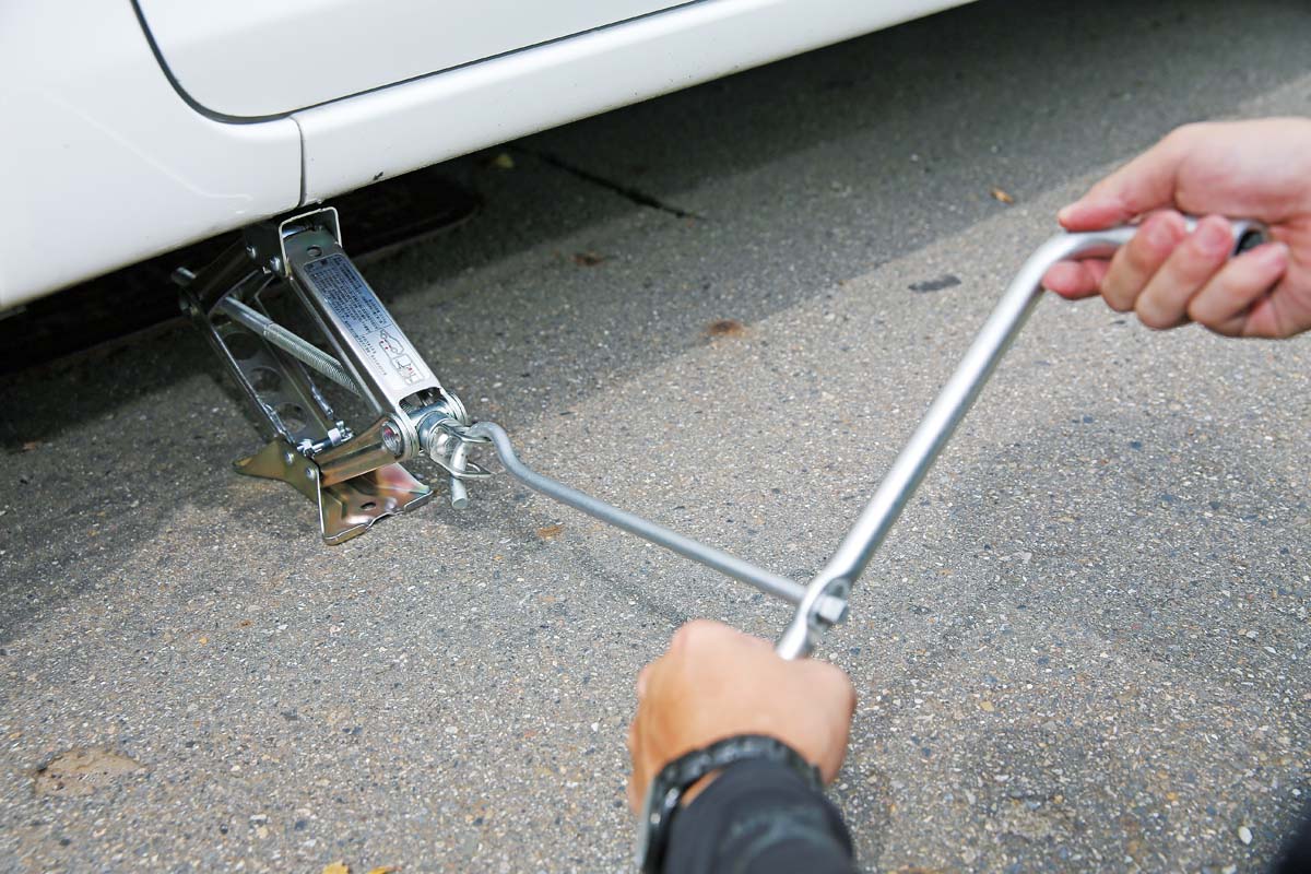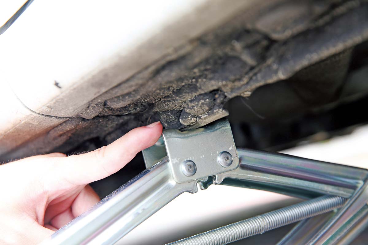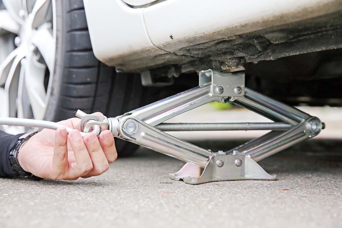 | 步驟4 使用千斤頂將車輛頂高至輪胎稍離開地面後便可繼續鬆卸螺絲更換備胎。 Tip:千斤頂須放置車樑底部大樑位置 |