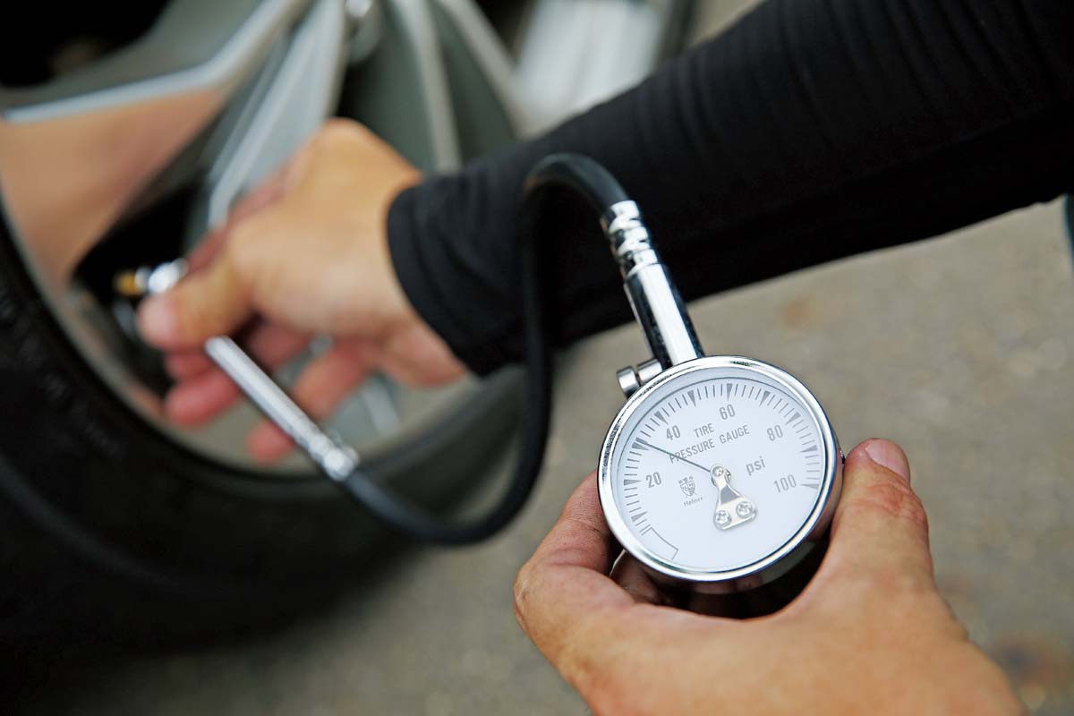 補胎時同樣也需在車後50~100m放置三角架,若不清楚哪輪洩氣可用胎壓錶個別檢查。