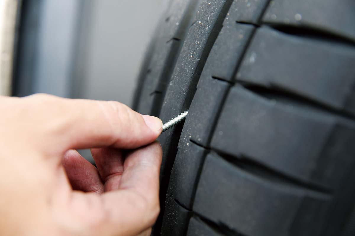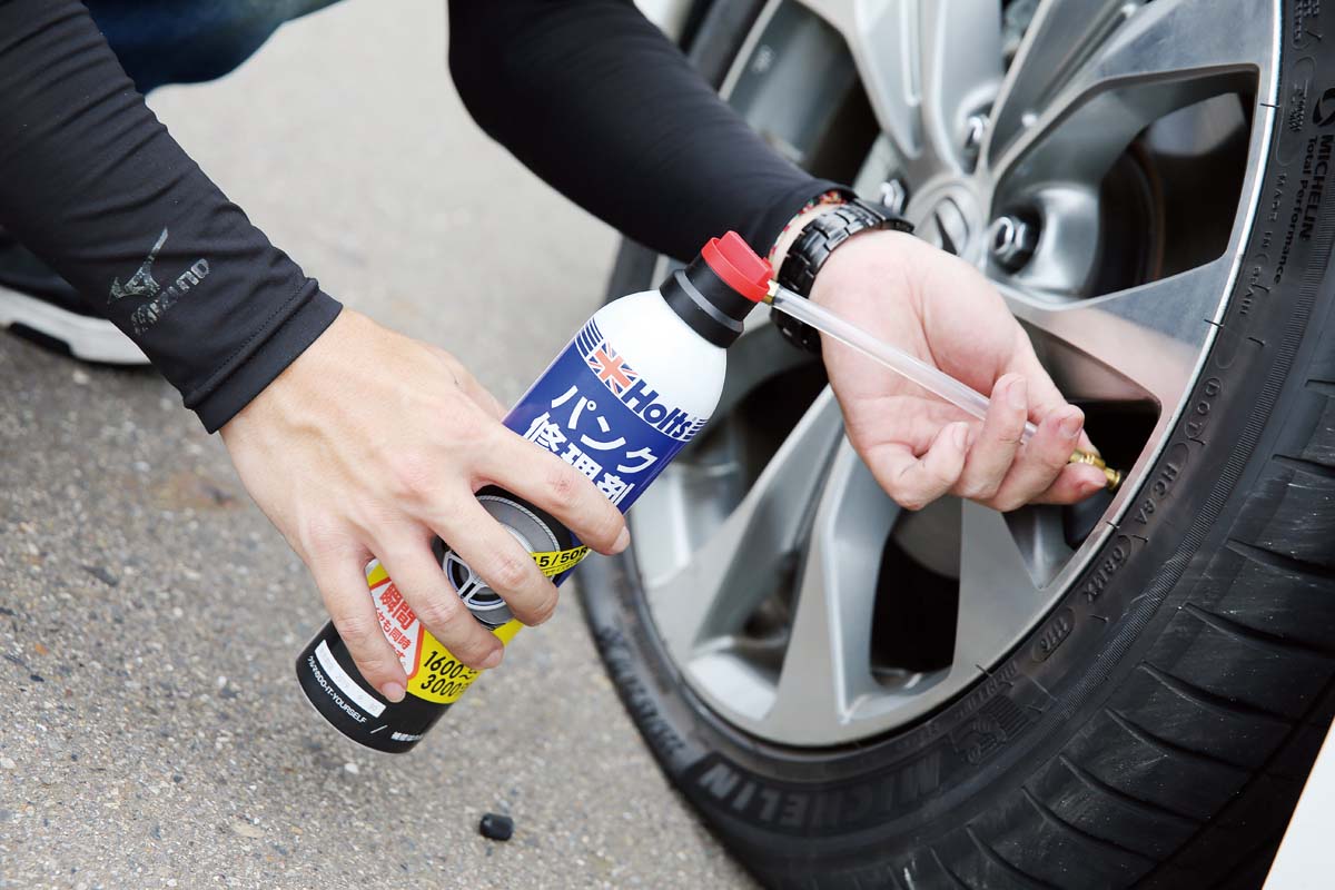 | 步驟2注入補胎劑前須先將輪胎異物拔除。 無法補胎情況 ※破孔超過3mm、 ※裂開 ※胎肩破損 (遇上以上情況打電話請拖車救援) |