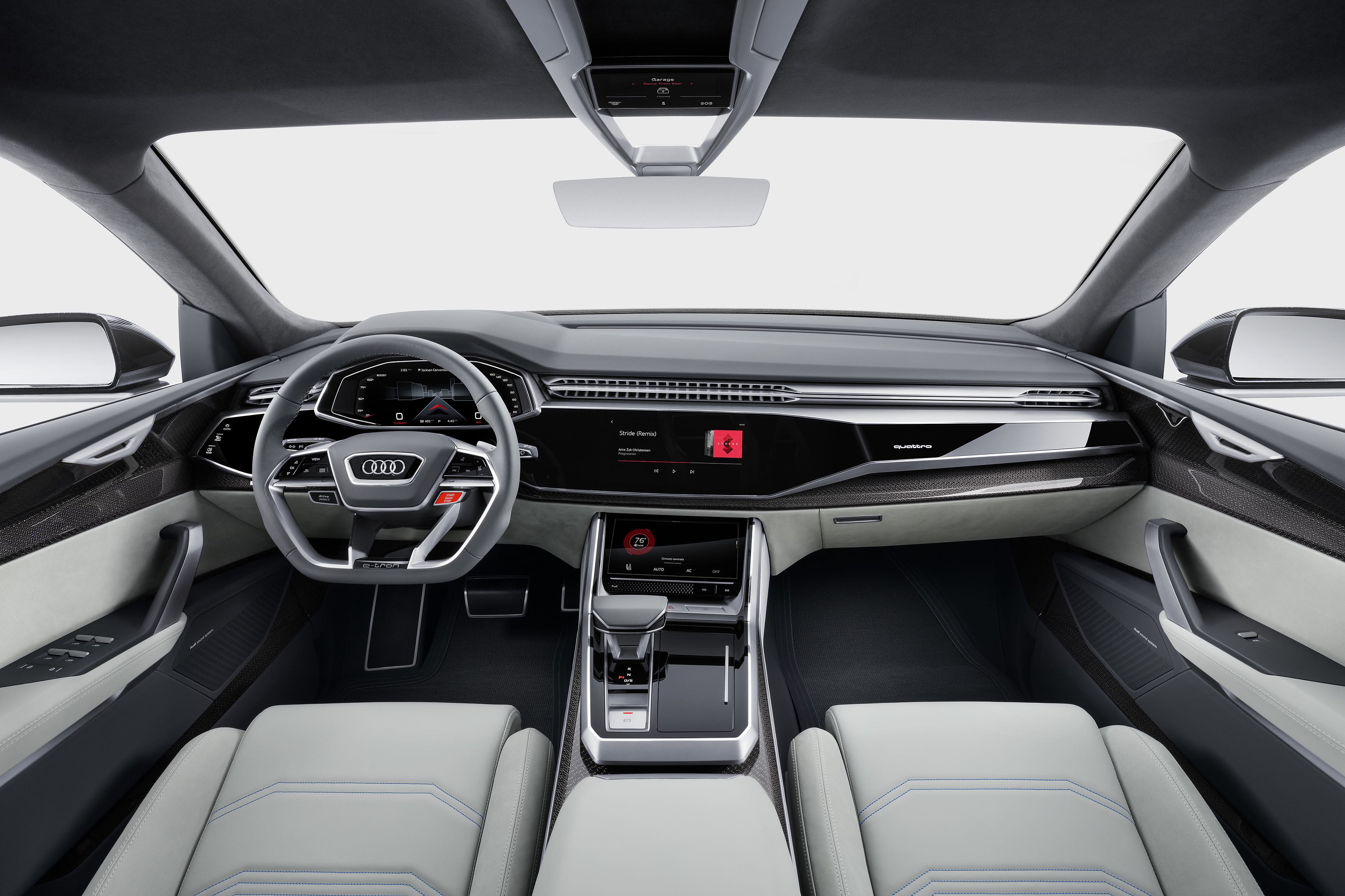 在2017 年開端,AUDI AG 於2017底特律北美國際車展(NAIAS)推出品牌旗下最前衛的科技新作—The all new Audi Q8 concept ,向全球豪華車壇預先展演四環品牌邁向未來的次世代設計精髓與進化智慧科技,同時也宣告Audi Q8預計將在2018 年正式投入量產行列,而The all new Audi Q8 concept更將為四環品牌開創全新的市場級距!承襲自1980年代Audi Ur-quattro的經典C柱等設計元素,並結合Coupe轎跑車流線外型與SUV強大的機能性,締造大型豪華SUV嶄新格局。此外,The all new Audi Q8 concept也同步展示最新一代的虛擬式座艙設計,將Audi Virtual Cockpit 發展至更高的科技應用層次,藉由整合最新的觸控科技與車艙旋鈕簡潔化,將直覺化操作與便利性完美體現,同時搭載具備高效能的e-tron plug-in hybrid 動能科技,在各項技術革新下,四環品牌以The all new Audi Q8 concept 率先向全球預先展演大型豪華SUV 未來潮流新標竿。