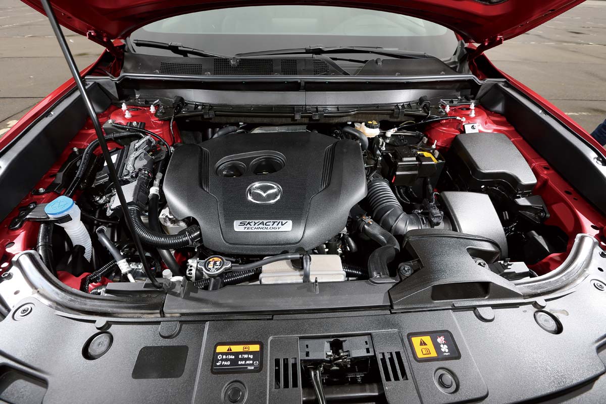 Mazda強調人馬一體的駕馭體驗,車輛的動態表現和同級對手相比也確實都屬於高段班,不過時常被消費者感到不解 的是Mazda一直以來都使用NA引擎作為動力來源(單指汽油引擎),雖說動力輸出達到堪用水準,但在今日渦輪技術 普及且能源效率更好的情況下,的確會讓人略有微詞,更何況許多喜愛Mazda品牌的消費者對於操駕都相當堅持,自 然也更希望可以看到代表動力代名詞的渦輪引擎出現,今天CX-9終於滿足了大家的期待。CX-9是國內Mazda車型中首 度搭載SKYACTIV-G 2.5T汽油渦輪增壓引擎的車型,更在此具引擎中使用了很多如電子控制缸內直噴、動態可變渦輪 增壓系統、冷卻廢氣再循環系統等全新技術,讓CX-9不僅擁有高效的動力輸出,同時又能保有優異的油耗表現,能在 轉速5000rpm時榨出230hp最大馬力,而媲美4.0升NA引擎的42.8kgm峰值扭力則於2000rpm釋放。