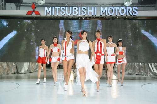 | 車展中車模走秀的舞台往往較觀眾高,因此拍出來的車模個個顯得很偉大。 |