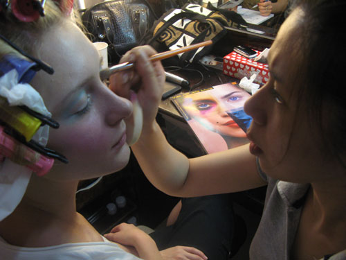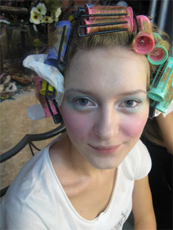| 上妝前:由上向下拍,若太接近,被拍的人臉部會變形而顯得很大;即使有了適當距離,仍會顯得很「小」,就像我們看小孩的角度一樣。 |