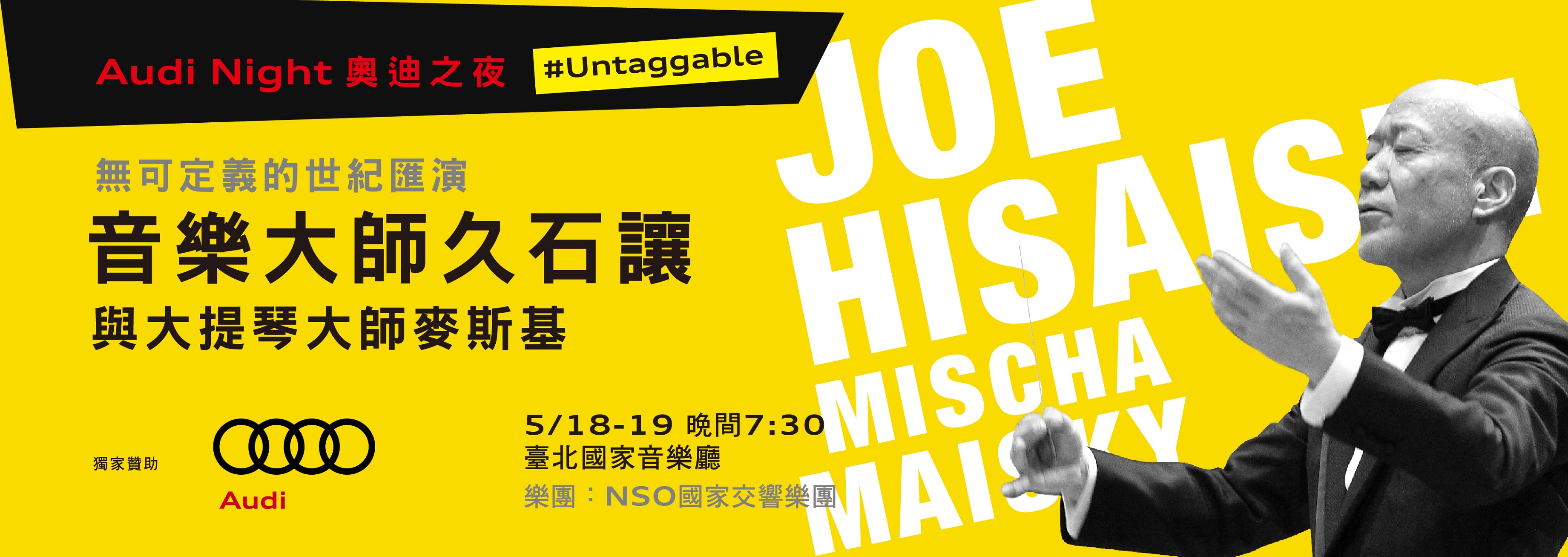 以前衛創新科技和精湛造車工藝聞名於車壇的Audi汽車,多年來對於贊助國內藝文活動向來是不遺餘力,而在迎接嶄新的2017年到來之際,台灣奧迪十分榮幸向廣大車迷朋友和古典樂迷們宣佈今年的「Audi Night奧迪之夜#untaggable」,獨家贊助日本傳奇音樂大師久石讓,以及大提琴泰斗米夏‧麥斯基首度跨世紀攜手合作,二位東西方音樂大師預計將於今年5/18、5/19於臺北國家音樂廳同臺登場匯演,共同打造這場無法定義的經典音樂盛事,台灣奧迪敬邀所有喜愛古典音樂的Audi尊榮車主和樂迷們共襄盛舉,親臨現場見證二位傳奇音樂大師無與倫比的魅力!