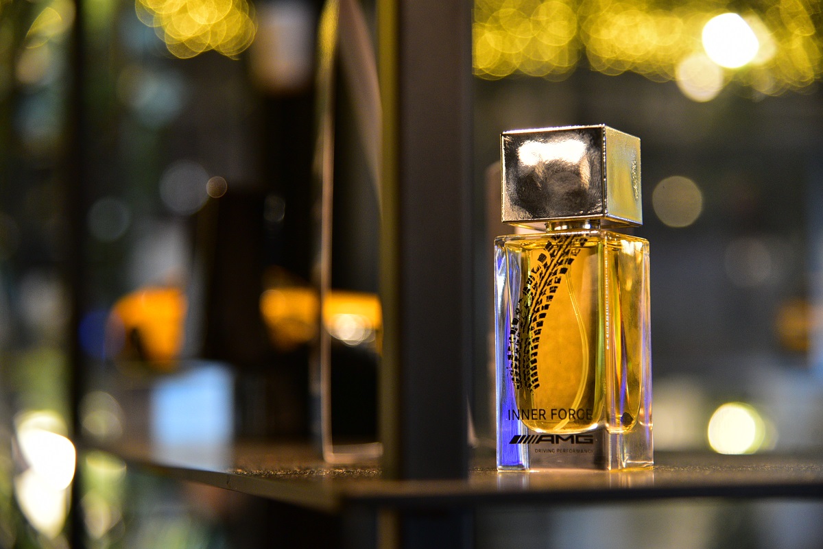 以性能著稱的 Mercedes-AMG,不斷探索速度的可能性,這次更透過嗅覺,表現速度的魅力。2016年底 AMG Driving Academy駕駛學院邀請了 F1 傳奇賽車手Mika Häkkinen來台,為了留下他與台灣學員們共同在賽道上疾速飆風的珍貴回憶,特別汲取賽道最迷人的感官刺激-「燒胎味」,精心製作了一款來自賽道的古龍水──「INNER FORCE」。