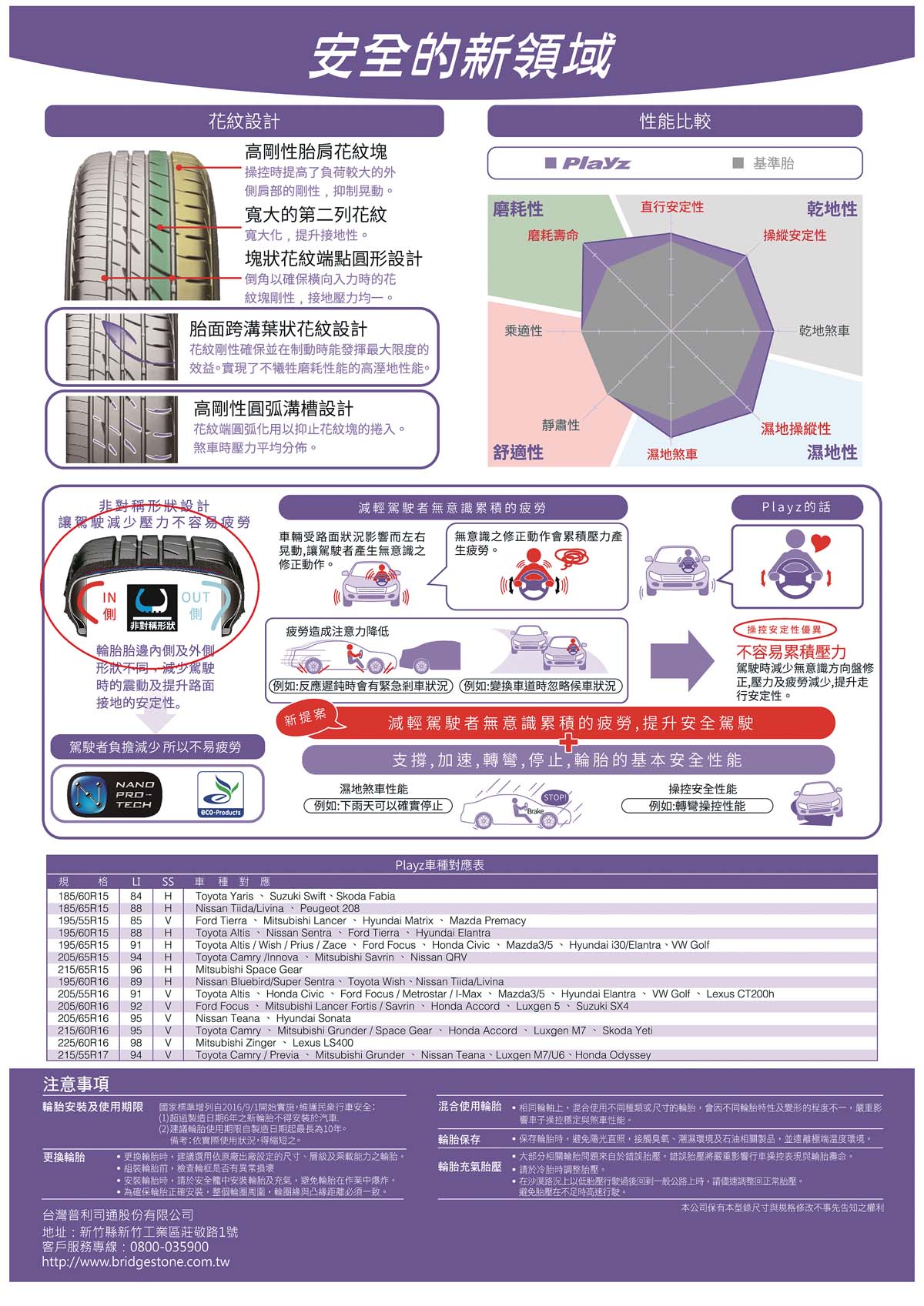 Bridgestone Playz規格表