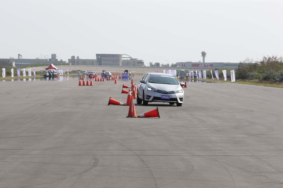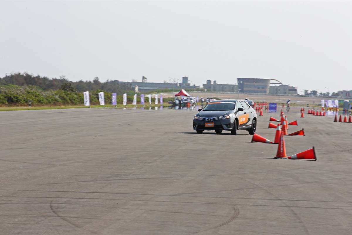 下午的乾地連續繞錐,超級寬廣的場地讓人不禁興奮了起來,起步將油門催到底大力拉扯方向盤進入錐筒,Mectora 3很明顯的4個輪子開始輕微滑移,不過油門補下去車頭還是相當聽話,而Playz則是很明顯的車尾被綁住,車頭則是方向盤轉多少就彎多少,55mm的胖胖胎尺寸下也不見任何車身不愉快擺動,車輛相當聽話,絕對符合大多數人對於安全上的需求。