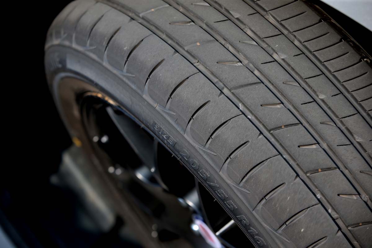首先來看到Playz的不對稱狀設計,就算是原廠車只有一度的Camber也都是負值設定(正值=內八),透過不對稱胎壁設計能在行駛時讓輪胎接觸面積呈現規則方形,因此能減少因路面所導致的拉扯晃動,使得駕駛可大幅降低因為路面起伏導致的方向盤拉扯,減去因為抵抗拉扯所導致的疲勞感,另外胎紋中央採加寬處理,溝槽也採用花紋與圓弧形狀組合,進而提昇濕地的抓地力與煞車表現。