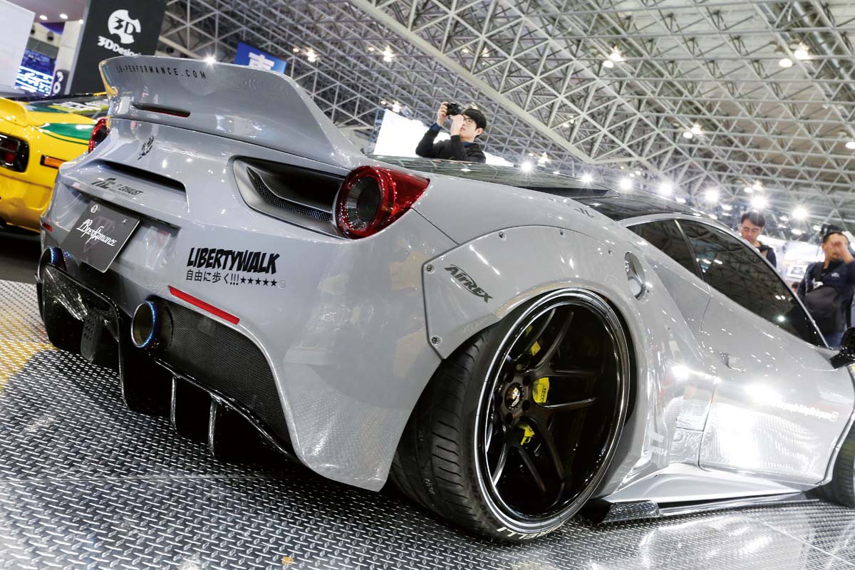 已經持續走紅將近6年好榮景的LB-Work,由於堅持採用傳統日式風格的寬體爆龜手法仍相當受到歡迎,因此今年的最新主力作品則是推出Ferrari 488GTB,透過鉚釘結合寬體套件將車身變得更壯碩,雖然與原廠線條設計上有衝突感,但也就是這樣才能夠激出更獨特的視覺感受,另外包含前下擾流、側裙、翹鴨尾翼與後下分流器等裝扮,持續維持品牌的傳統精神。不過要讓車輛能夠呈現幾乎貼地的關鍵,就要靠台灣AirRex所打造的氣壓避震器,能自由升降的氣壓輔助更是功不可沒。