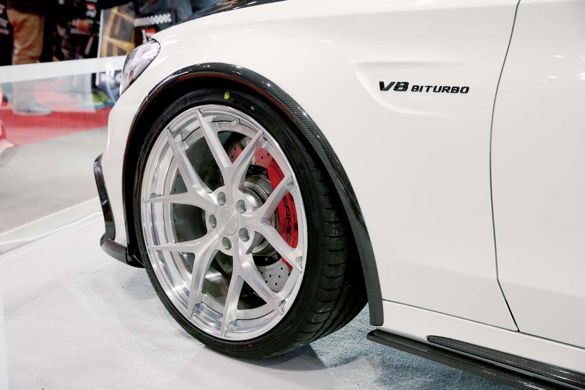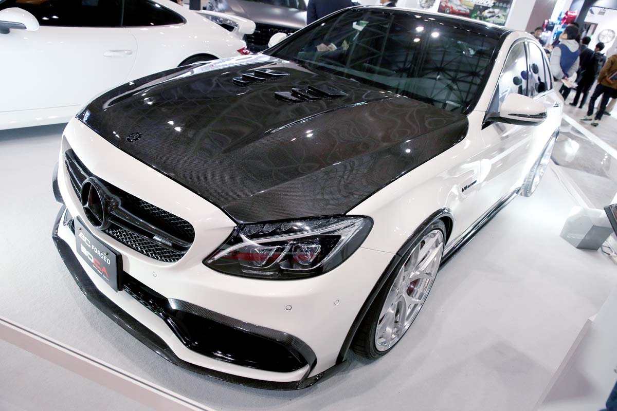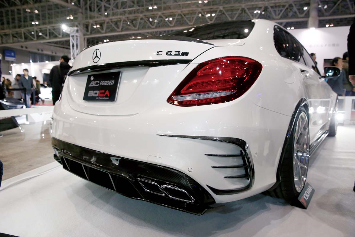隨著碳纖維空力外觀的生產技術逐漸普及化,想要打造更具性能的外觀肯定首選乾是碳纖維製程,而這也是德國BOCA Design所堅持的設計理念,針對新世代M.Benz C63 AMG為了能夠提供更具性能的空力套件,可以看到引擎蓋除了換為碳纖維材質,刻意增加梯形撞風口可適度導入冷空氣,而沿用原廠外觀所增加的前下擾流、氣壩飾板有助於集中車頭冷空氣,強化進氣與冷卻效能,至於車尾也導入碳纖維分流器、鴨尾與擾流,為了搭配整體外觀的性能提升,胎圈也改為BC Forged的雙片式鍛造品。
