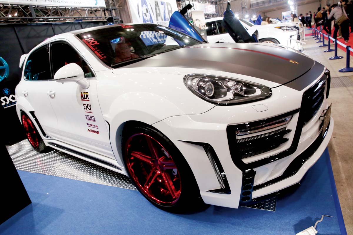 極簡的日式風格雖然深受許多人喜愛,但是讓人眼花撩亂的複雜線條則是Zero Design針對Porsche Cayenne所推出的專屬空力套件,可以看到前保桿大量運用梯形排列方式,加上LED日行燈、黑白雙色與前下擾流的組合,就算再普通的車輛都有十足的張力表現,更何況還是SUV當紅銷售車款的Cayenne,而前、後葉子板也同樣輔以寬體式樣,車尾除了有雙層尾翼增加下壓力之外,結合後保桿所增加的下擾流同樣採用複雜的線條設計。至於輪圈則改為22吋SKY Forged S201E部品。