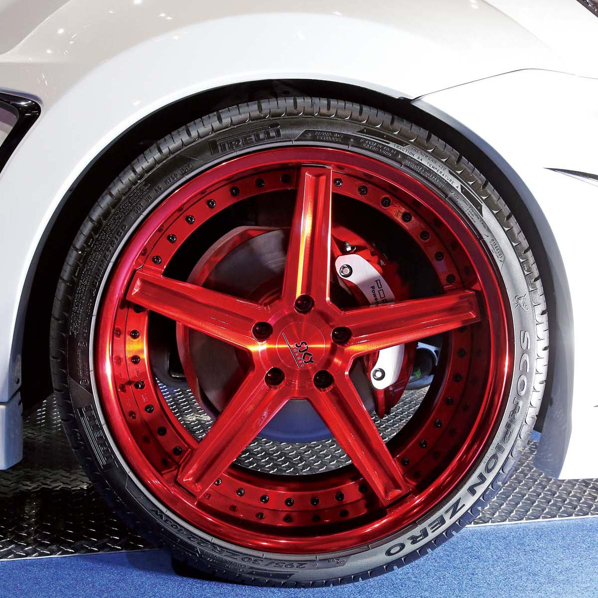 | 懸吊系統除了換上KW可升降高度的部品,輪圈方面也改為22吋SKY Forged S201E部品。 |