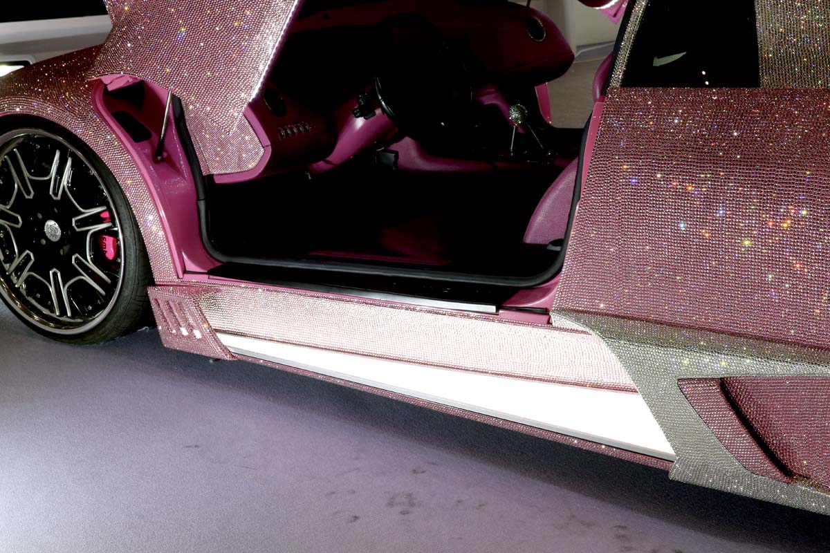 全車貼水鑽的改裝手法,在多年前DAD首度以M.Benz SL敞篷車型推出之際就曾引起全球驚人的騷動,雖然後來還有幾輛採用貼水鑽的改裝方式,但是並沒有多大的吸引力,可是為何還要介紹這輛粉色系水鑽牛呢?除了PINK PINK的粉嫩色系深受女性消費者喜愛之外,最主要的特色就在於側裙採用大面積的LED照明效果,不僅僅能夠打亮車身上的水鑽營造出閃閃發光,另外配合LED光圈與霧燈,看起來就是有一種前衛的科技感,即使是老牛也有新玩法。