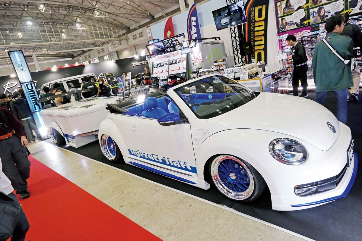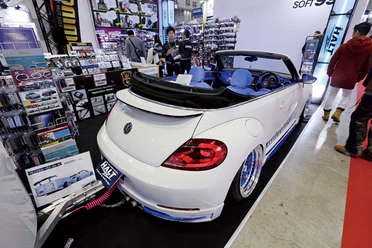 擁有經典外型的VW Beetle金龜車,獨特的外型怎麼看都好看,只不過受限於車型上的造型限制,導致車內能夠利用的空間有限,為了增加能夠乘載的使用空間,Halt Design除了開發全新的空力套件裝扮金龜車以外,包含連結在車後的拖車也都進行相關設計,並不只是單純裝個拖車架與拖車,如此一來可承載的容量瞬間暴增,就算要拖一輛比賽車應該都不是問題。配合白色基底與藍色線條的輔助,可以看到除了輪框也採用相同的配色手法之外,藍色麂皮的內裝看起來真是活潑不少。