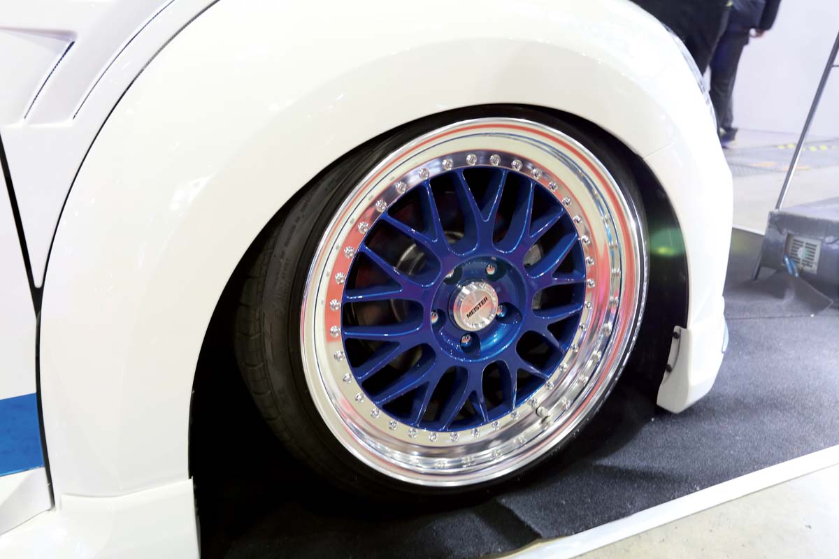 | 利用氣壓避震器刻意降低車高以呈現海拉風格,就連輪圈配色也要講究與車色相呼應。 |