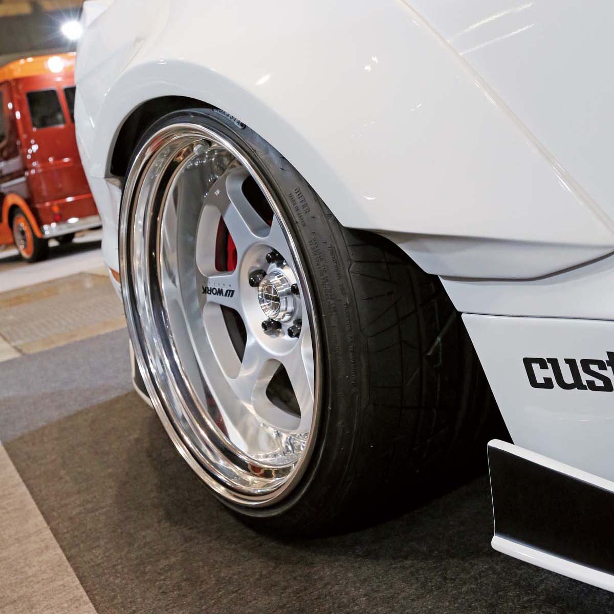 | 超寬大的後葉子板造型不僅要切除板件才能安裝,同時也讓後輪尺寸一口氣增加至285/35的尺碼。 |