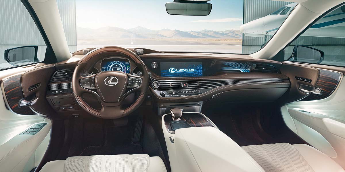車室設計則承襲一如既往的豪華風格,整體氛圍以日本「行燈」概念為啟發,結合科技與日式精緻工藝,包含懸浮式車門扶手及最新開創的鐳射雕割木紋飾板,相較於傳統木紋飾板,色澤更加飽滿生動。中控檯部分,儀錶板使用皮革包覆,並以駕駛為導向出發,將不同顯示螢幕整合在同一高度外,操控按鍵也設計在駕駛隨手可得範圍之內,讓駕駛可以更舒適愜意的行車。座椅可額外選配冷熱通風及按摩功能,更首度搭載氣壓式懸吊系統,在車輛解鎖後車身將自動抬高,讓乘客能更方便的入座。安全部分則將Lexus Safety System+主動式安全防護系統列為標準配備,包含PCS預警式防護系統、DRCC車距維持定速系統、LDA車道偏離警示系統等,提供更安全的行車防護。全新LS車系美國將在2017年底上市,國內部份預計最快在第四季末導入。
