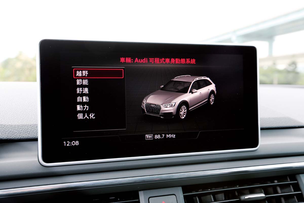 | A4 allroad quattro上的Audi drive select多了一個越野模式,可以鎖定差速器並採用全時四驅的驅動配置。 |