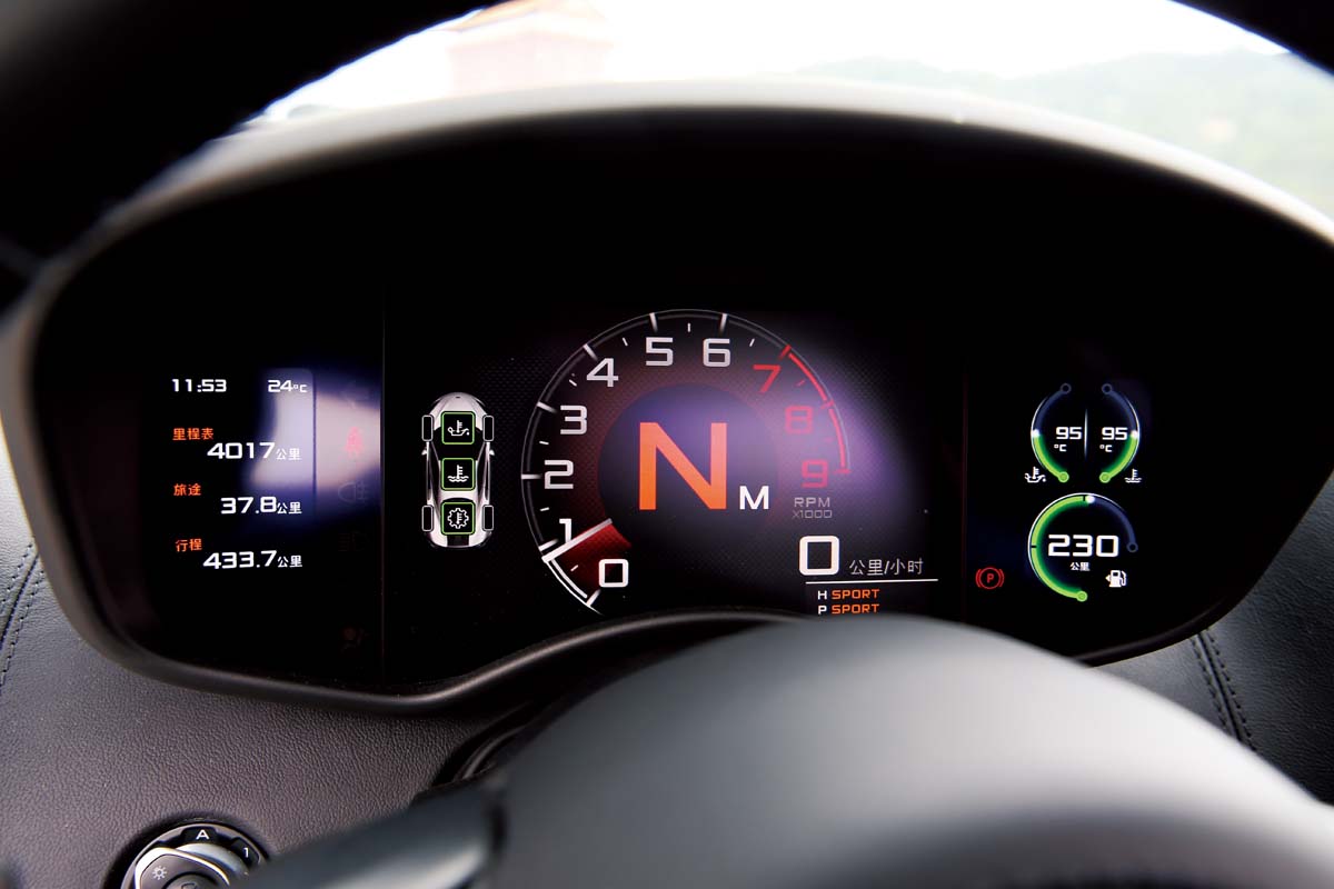 | 全液晶儀錶設計簡單洗鍊,會隨著動力模式切換顯示方式更強化了氣氛。 |