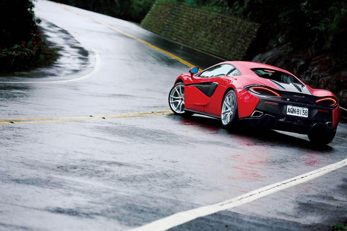 每年的這個時候出外試車總是很容易遇上雨天,試駕尋常車輛的時候下雨還算可以忍受,只是雨跟水氣多少會帶來作業上的不便,但是當試駕的對象變成超級跑車的時候,雨天濕地就不只是不便而已,而是一種限制車輛發揮性能的障礙。但我們的運氣不錯,雖然一早下雨,但雨勢有漸緩的趨勢,在躲過陣雨之後我們得到了一小段好天氣,雖然時光短暫,但也足夠讓人體驗570 S的動態表現了。