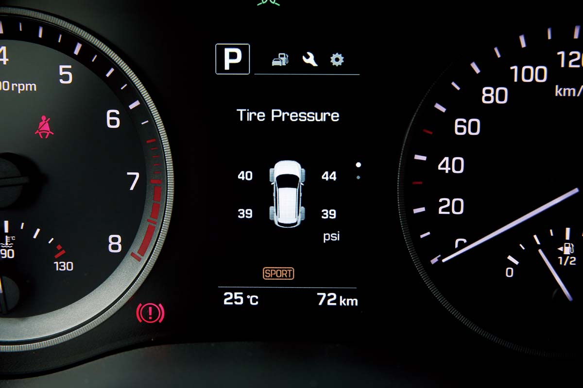 | 當胎壓不足時,依車款不同有圖像燈號警示與顯示胎壓值兩種形式。 |