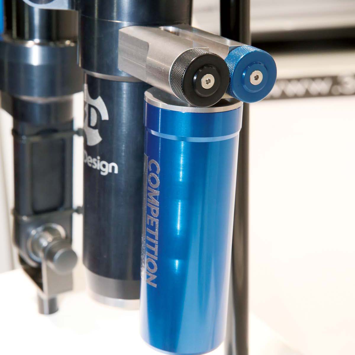 BMW車系向來給人的印象就是充沛的運動能力,向來以優雅空力套件見長的3D Design,其實在2016年TAS中就已經推出,20段阻尼可調的倒插式避震器,今年2017年TAS更是大幅進化,直接展出新到連官網都還來不及登入的,F87 M2賽道專用的高階版避震器,為了應付賽道內更細微的變化,特別將氮氣給獨立移出,確保形成作動的Q度,根據3D Design表示這套避震器目前還在開發階段,希望今年內可以正式販售。
