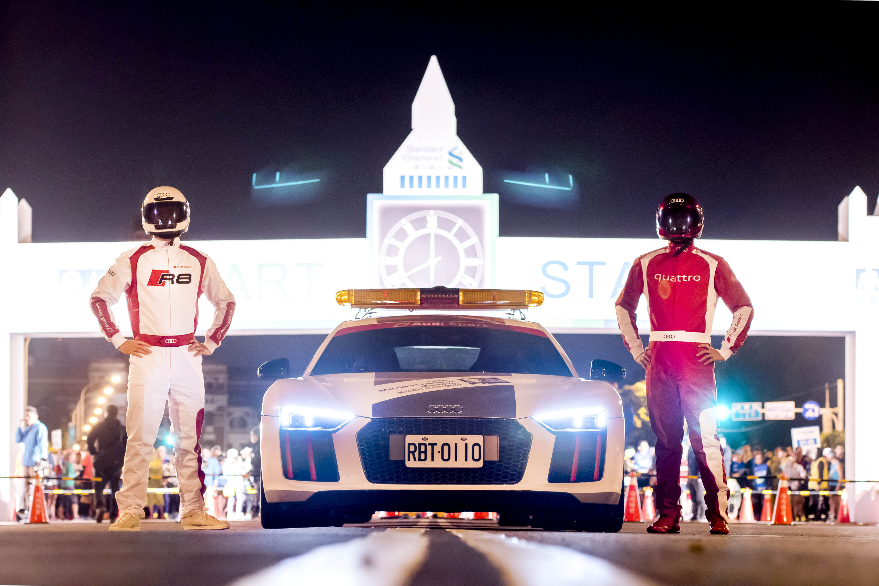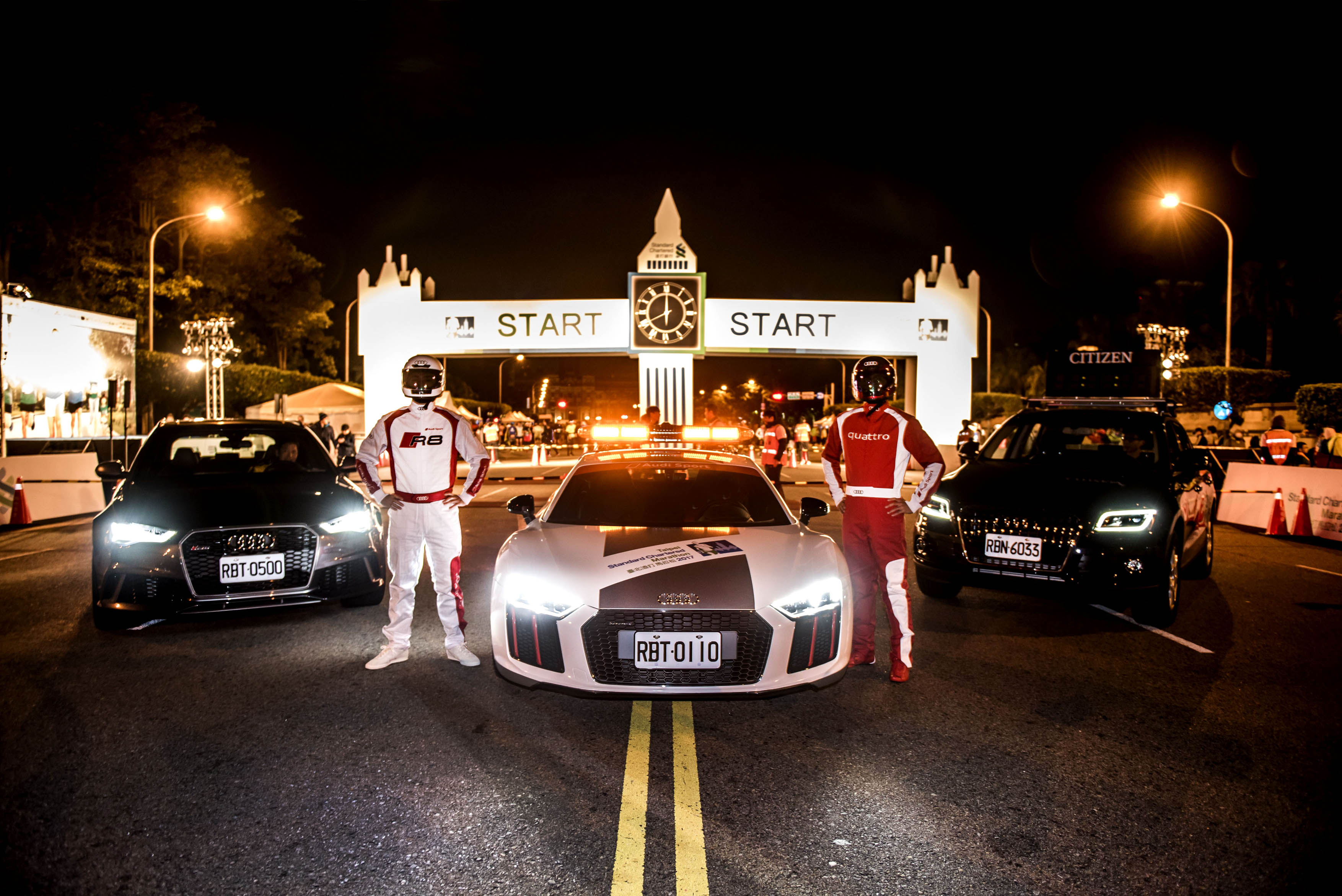 2017臺北渣打公益馬拉松今日開跑,台灣奧迪以Audi Sport子品牌全力支持國內優質運動,將四環品牌在賽道上所展現的競速精神,展現給喜愛運動的民眾;並與長期合作夥伴─渣打銀行攜手「2017臺北渣打公益馬拉松」,除了打造價值4,000萬台幣的「臺北渣打公益馬拉松賽事專屬Audi Sport車隊」,由旗艦超跑Audi R8領跑車帶領跑者出發外,位於大佳河濱公園的終點站與嘉年華區更是以充滿賽車氛圍的設計呈現Audi Sport精神,為跑者帶來不一樣的馬拉松體驗!
