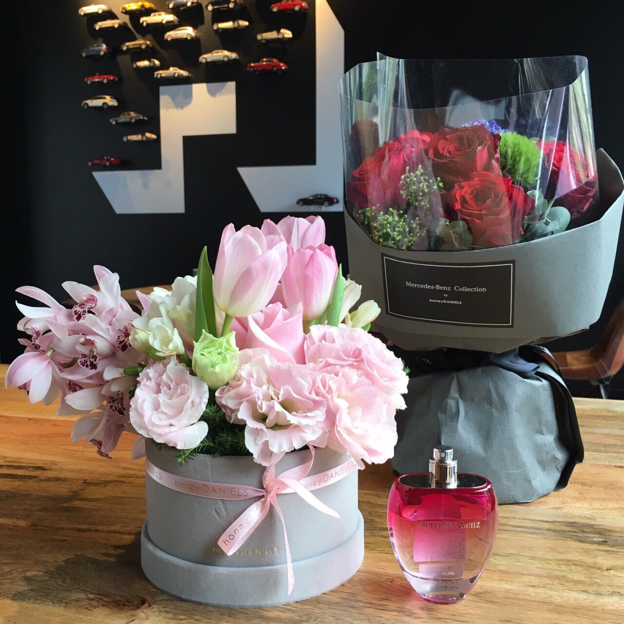 | 香氛圓盒花「波娃」含 Mercedes-Benz 1.5ml 女香,建議售價$2400 |
