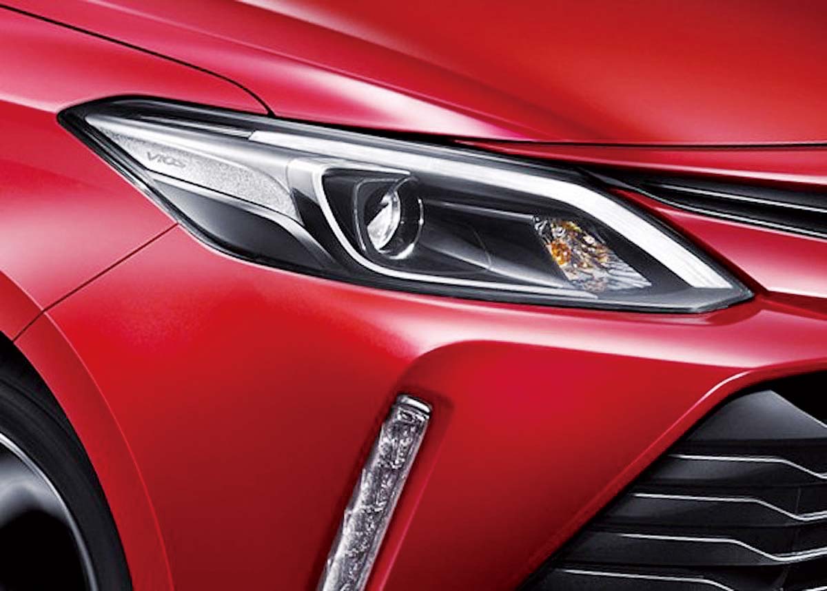 此次泰規小改款Vios的外觀面貌經不小幅度的修改,車頭乃導入新世代Keen Look的家族設計語彙,以全新「V」字形水箱護罩,搭配加大面積的前保桿橫柵式進氣壩以及造型更為銳利的頭燈組與直立式LED晝行燈,使整個造型更顯年輕與動感氣勢。至於車尾的變動則不大,僅換上更亮眼的LED尾燈組,並以一條立體的鍍鉻飾條連接左右尾燈,來提昇視覺質感。