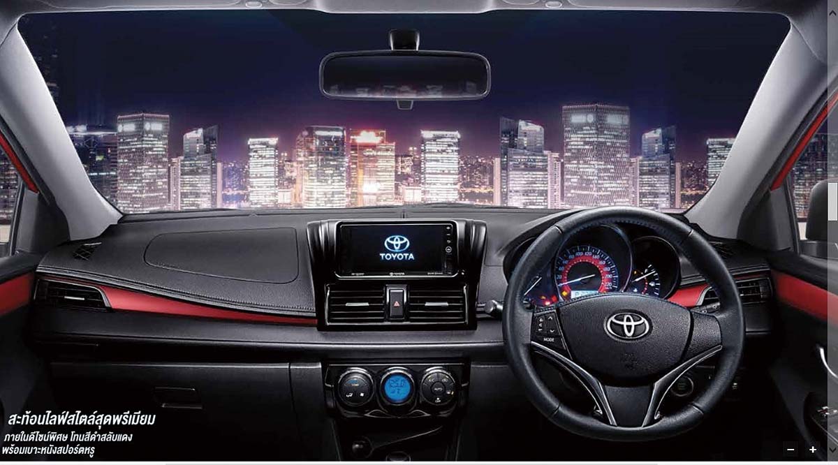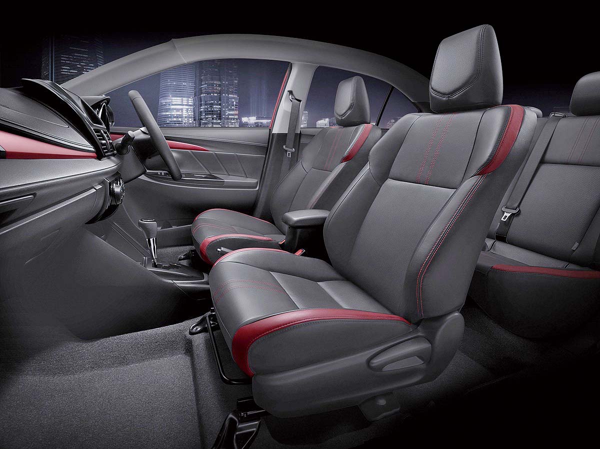 泰規小改款Vios的內裝鋪陳維持原樣,不過藉由鋼琴烤漆飾板、紅色消光飾板以及紅/黑雙色調真皮座椅的配置,為車艙營造出幾分動感氣息。而在內裝配備部分變動也不大,頂規車型標配有MID多功能資訊幕、三環式自發光儀錶、Smart Entry、Push Start、智慧型恆溫空調、多功能真皮方向盤以及7吋觸控式螢幕等,這行頭與國內現售車款差異不大,不過此次泰規小改款Vios的頂級車型仍配置有VSC、TRC、ABS+EBD+BA及雙氣囊,特別是前兩項車身動態穩定控制系統乃一再於國產Vios身上缺席,儘管希望國內和泰汽車能將其納入在未來小改款Vios身上,但預料在成本與銷售價格的考量下,機會不大!