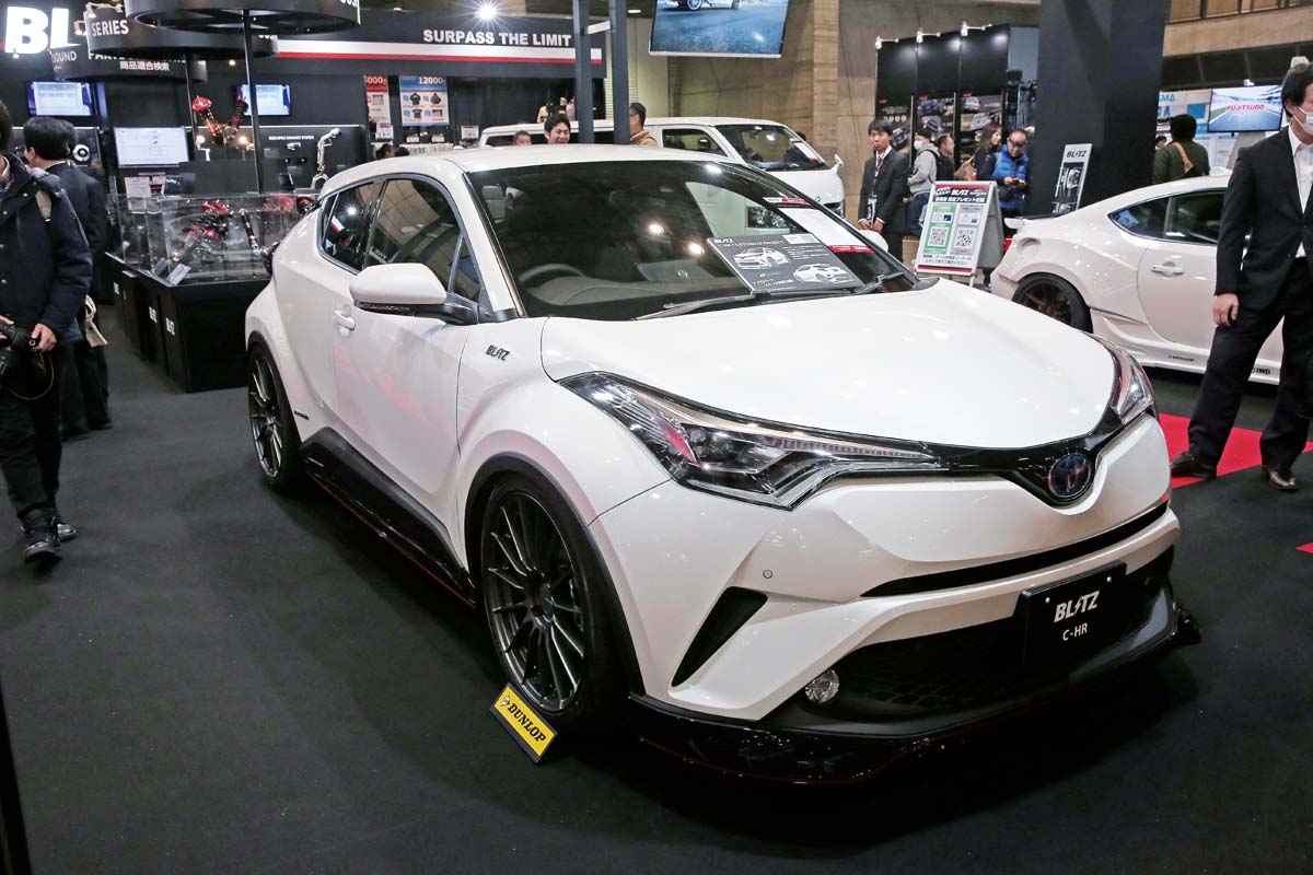 動力老舖Blitz對於C-HR已經開發出了避震器、高流量濾心及排氣管。車展所展示的C-HR,在大幅降低的車高與Enkei Revolution RS05RR 20吋大腳的搭配下,整體視覺跑格直可媲美86等級。至於拿手的電系控制系統如節氣門控制器、渦輪壓力控制器等皆還在實車測試中。
