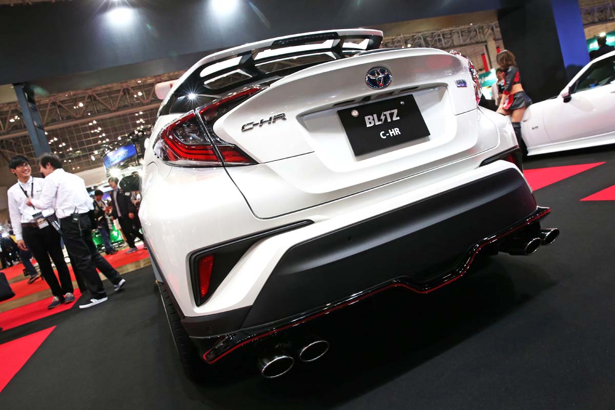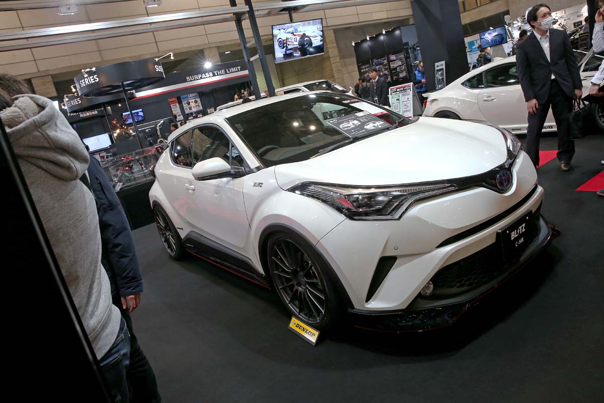 每次展覽總是以白色車輛為主的BLITZ,這次會場內的C-HR也是相當有味道,首先選擇原廠搭配前中後小包的G-T版本作為主角,懸吊部分則是搭載上自家的DAMPER ZZ-R Spec避震器將車高降到極低,20吋大腳也正好填滿碩大的輪拱,全段高底可調搭配96段阻尼強度自由設定功能,另外更搭載了DSC系統來達到車內即可設定阻尼的功能,小編也在一次的報導中試駕過搭載DAMPER ZZ-R Spec的車輛,坑洞的處理相當優異,低速閥門Q度十足,彎道內的側傾抑制也很有水準。
