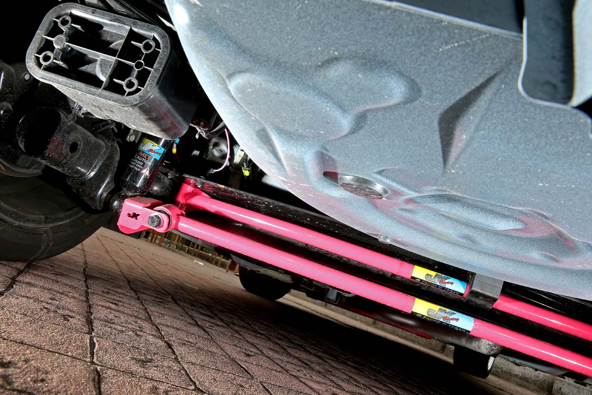 | 引擎室x2、前下拉x2及後下拉x2,總共6支拉桿完整的鞏固下半身強度,卻又不會過度硬派。 |