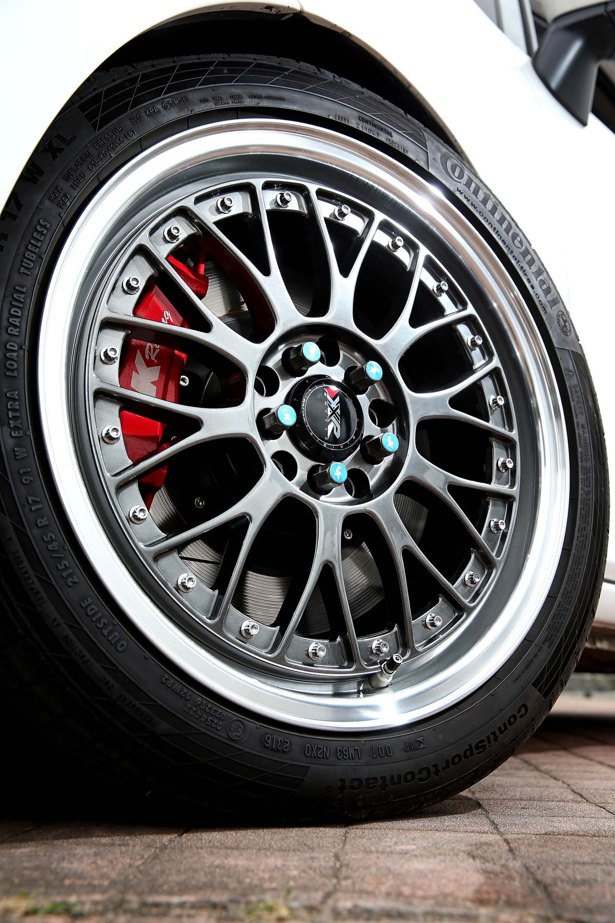 另外底盤的部分則是由引擎室、車底到車尾,追加了總共6支的拉桿,但卻沒有帶來不愉悅的車體跳動,所有鎖點都是針對原廠孔未設計,輪圈部分也更換上XXR 17吋的規格,彎道內信心豈是原廠15-16吋能相提並論。