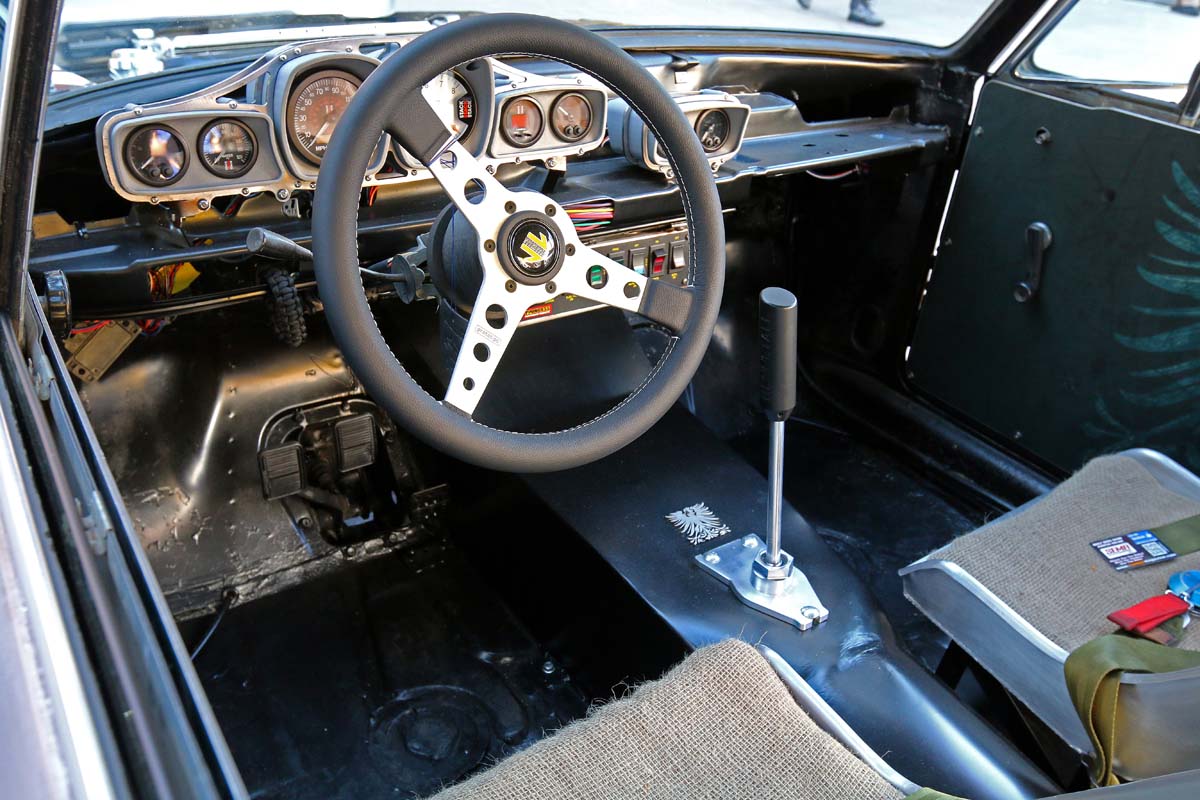 | 除了車內儀錶改為兩大六小的配置以外,盡可能清空車內不必要的重量以達到輕量化目標,不過ACCUAIR氣壓懸吊的儲氣瓶則是安裝於後座。 |