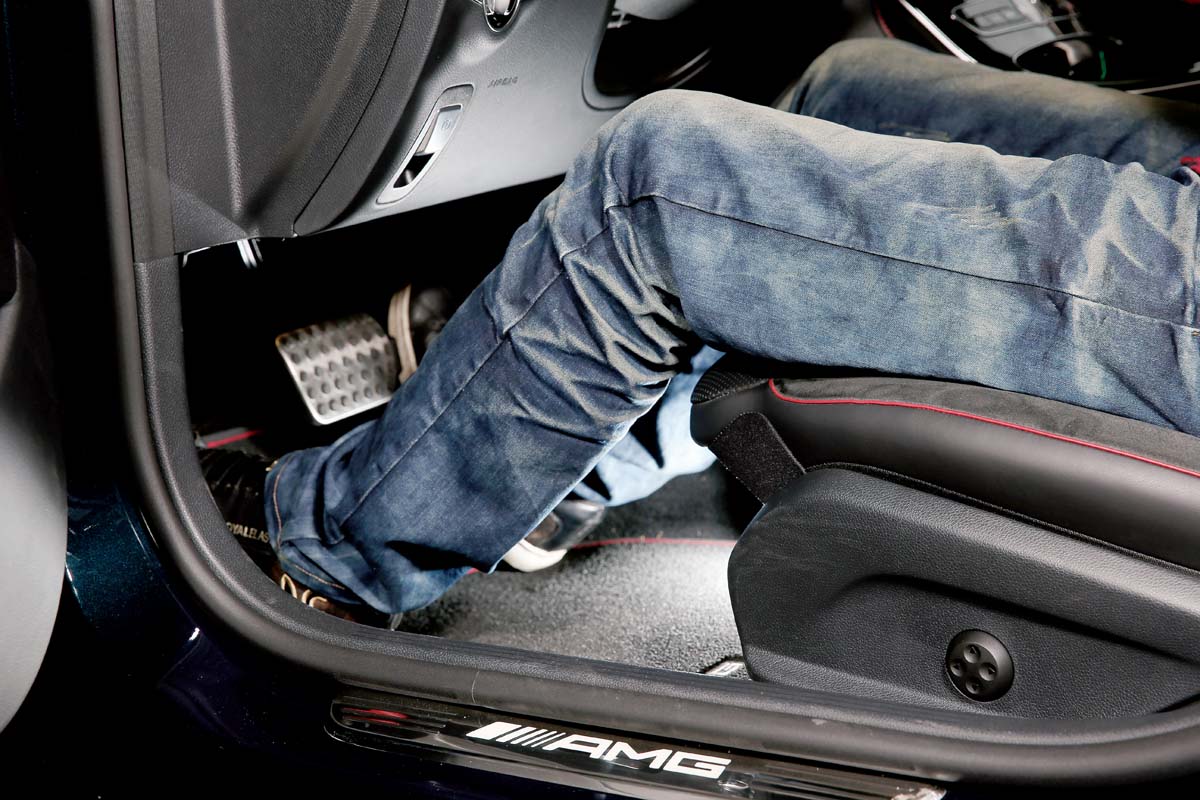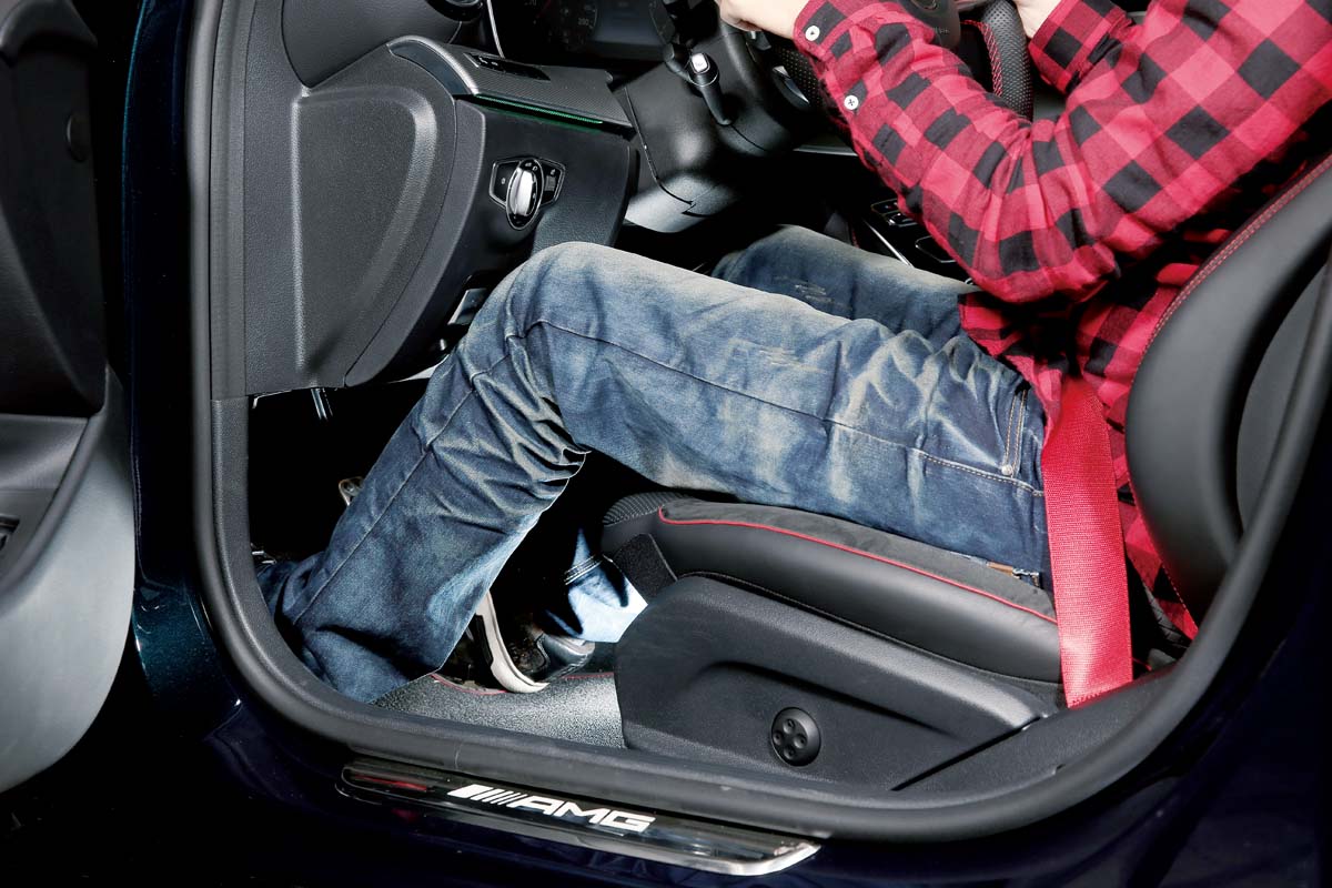 由於每位駕駛者的身高、體重、手腳長度都不盡相同,因此正確坐姿也因人而異,調整正確坐姿的第一個步驟,就是調整座椅的前後、高低位置(有些車型座椅無法調整高低),準則是雙腳不要碰到儀錶檯下緣,並把腳掌輕放在煞車踏板上,大腿與小腿大約成120度夾角,這樣不僅可以給予足夠的煞車力道,油門與煞車踏板的切換也非常順暢。至於座椅高低調整,則是在視線範圍夠清楚的情況下,盡可能地貼近地面為原則,這樣不僅重心較低,對於車輛的操控掌握度也更高。不過座椅高低調整有個例外,就是當你在進行Off Road越野駕駛時,則要坐得比正常更高一些,才能更容易掌握前方路面狀態。