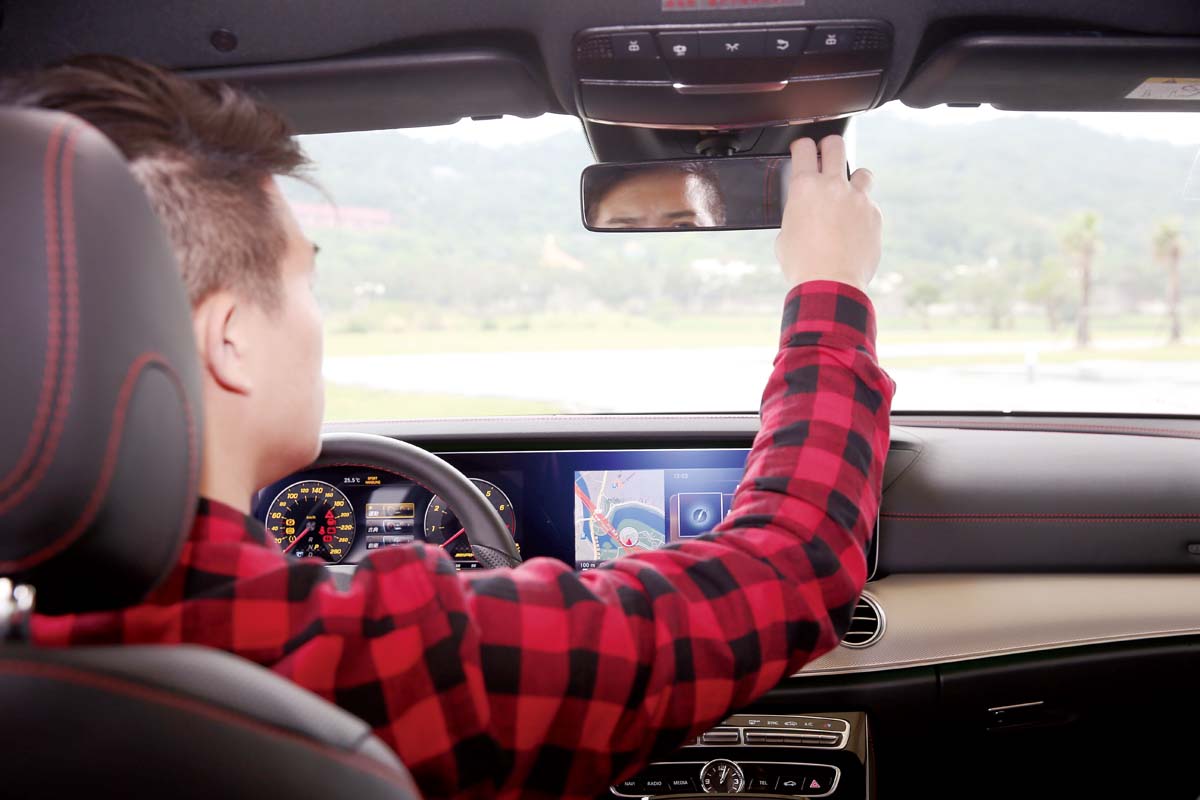 調整完坐姿之後,可千萬不要順便調整一下車內後視鏡,畢竟我們後腦杓沒有眼睛,所有車輛後方的資訊都只能靠這三面小小的鏡子來完成。車內中央的後視鏡,基本上只要調整到可以完整看到後擋風玻璃即可,至於習慣偏左或是偏右,則因人而異。