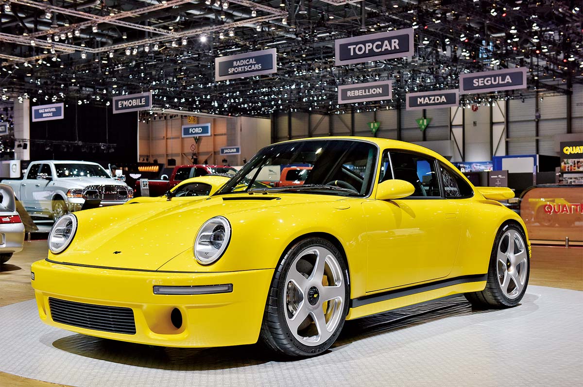 聞名世界專事德國Porsche車型改裝的改裝廠RUF,在本屆的日內瓦車展推出了一部RUF 30 years anniversary車型──CTR「Yellow Bird」,外觀上看起來就是部經典的993 Carrera,但實際上這可是RUF技師推出的「全新」車型,車體使用了全碳纖維材質打造,將車重控制在1200kg以下,引擎則是使用了一具3.6升水平對臥六缸雙渦輪增壓引擎,可以榨出700hp最大馬力,搭配單一六速手排變速箱與後輪驅動設計,卻能創造出0~100km/h加速僅消3.5秒的驚人成績,0~200km/h加速更只要可怕的9秒,極速更上看362km/h。